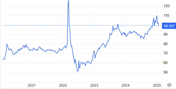 FIVE-YEAR TRAJECTORY OF THE ROUBLE-USD EXCHANGE RATE, 2020-25
